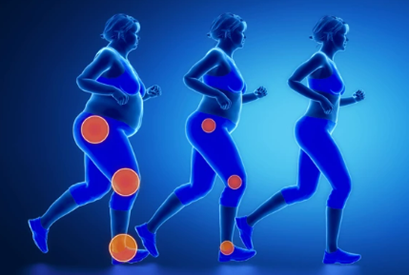 肥満は、整形外科においても腰や足・膝・股関節といった主に腰から下肢の関節に大きな負担となって痛みや変形の原因となります。下肢の関節には体重の何倍もの負荷がかかると言われています。何十年にもわたり負荷がかかり続けるため、体重が数㎏増えるだけでも、関節への負担の積み重ねには大きな違いが出てしまします。